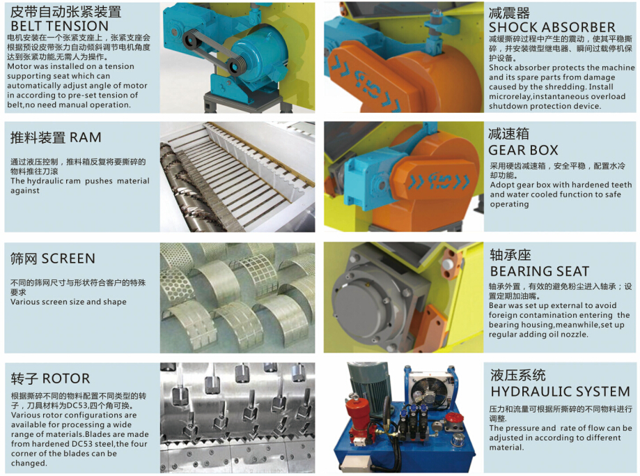 環(huán)創(chuàng)單軸撕碎機(jī)可滿足更行業(yè)肥料回收需要,適用于塑料、紙張、木材、纖維、電纜、橡膠、廢舊家電、輕質(zhì)金屬、生活垃圾處理等,其采用西門子編程控制系統(tǒng),可以自動(dòng)控制,設(shè)有啟動(dòng)、停止、反轉(zhuǎn)及超載控制功能,以便保護(hù)機(jī)器,防止過(guò)載和堵塞。我們將根據(jù)物料大小、產(chǎn)量以及最終產(chǎn)品出料尺度等為客戶提供完善的技術(shù)解決方案