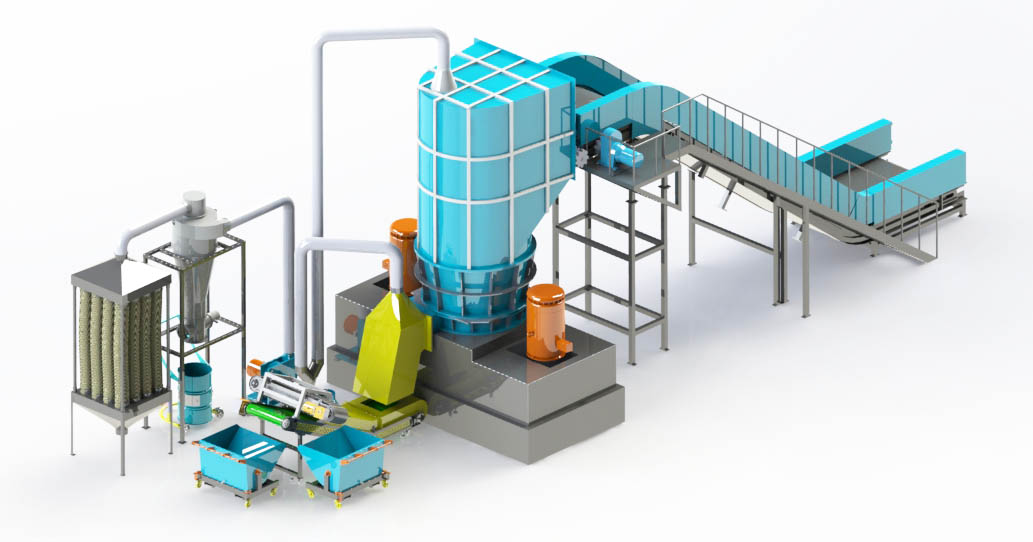• Vertical Shredder ¨C high impact grinding of the shred for size reduction, separation, cleaning and densification of the various fractions
